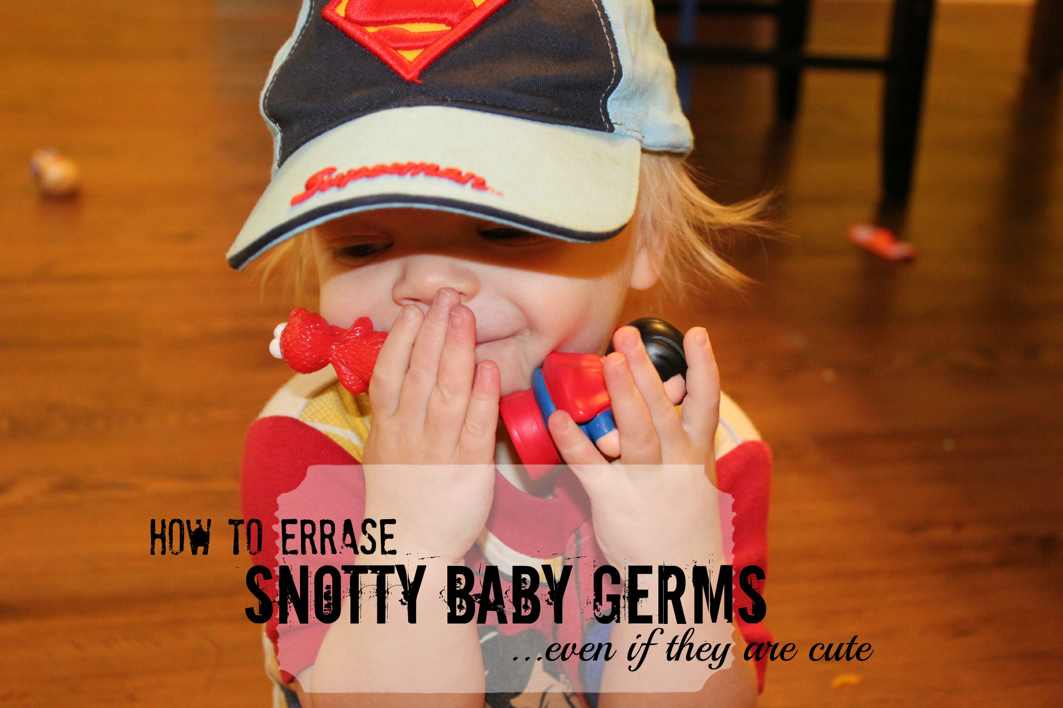 If you have company coming and your afraid your littles snots will get passed to your friends littles {or vise-versa after they leave ;O), Grab a can of descent smelling Lysol. Hose those bad boys down. I am serious! This was a common practice when I worked at a preschool. During story time, my job would be to Kill Germs! Along with door knobs, toilet seats, and sink knobs, I would walk by shelves of toys and just spray. At my own house, I've often dumped tubs of toys on to a rug, sprayed the pile down and moved to the next tub. By the time I'd done all the toys and made my rounds through the house {during cold/flu season}, all the toys were dry and I simply put them back into the appropriate tub.