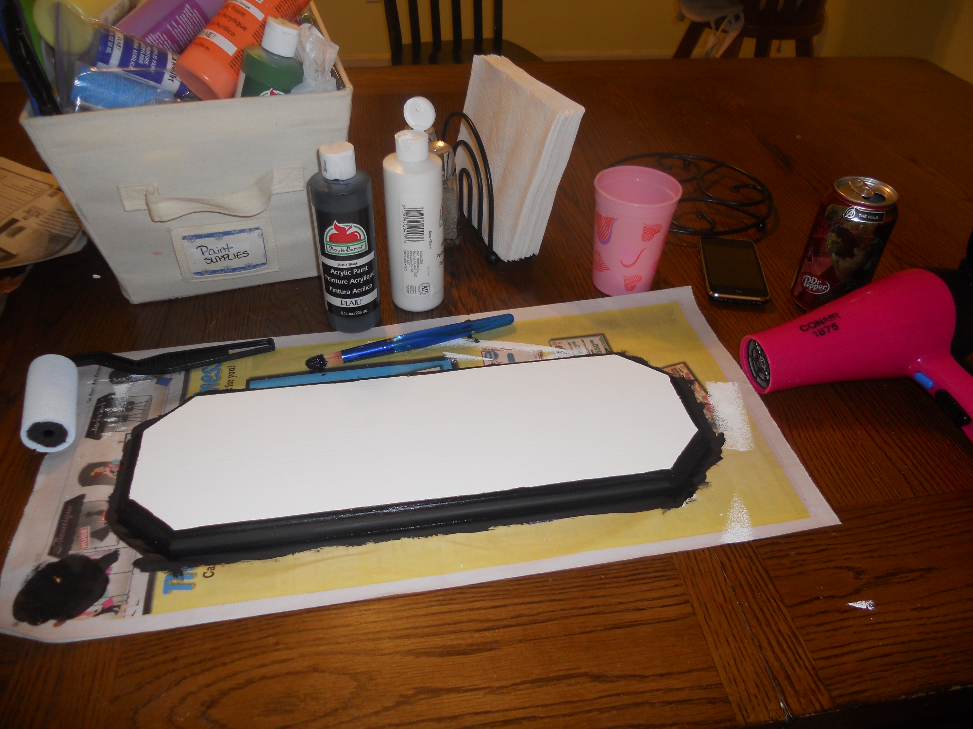 I broke out my acrylic paint. I chose black and white.